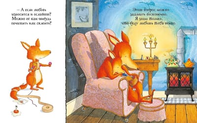 Лисенок задает Большому Лису разные вопросы. Например: «А если бы стал я медведем и жил в пещере, ты бы тоже любил меня, ты уверен?». И на каждый из таких вопросов Большой Лис отвечает с уверенностью, что будет любить своего малыша что бы ни случилось. Трогательная и нежная книга о самых больших тревогах ребёнка и о бесконечной родительской любви.