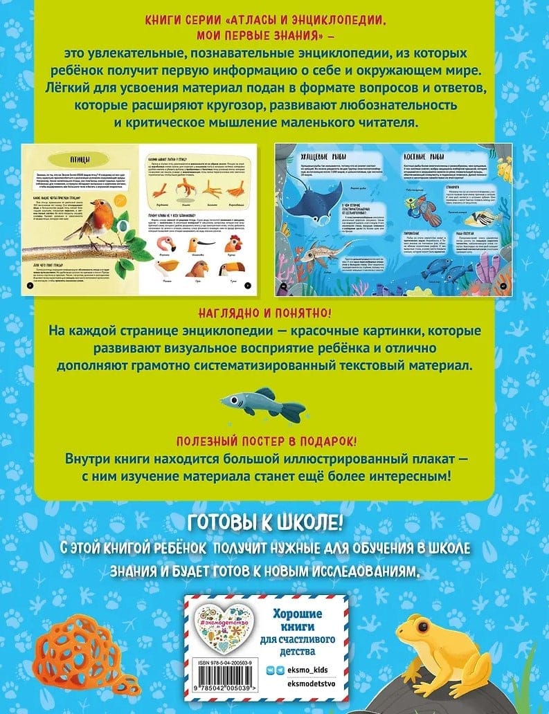 Энциклопедия в формате вопросов и ответов, созданная специально для малышей дошкольного возраста. Вместо длинных статей «научным» языком — наглядные, понятные и увлекательные рассказы о животных плюс большой постер в подарок. Удивительные рекорды животных, их внешние особенности, необычные привычки — всё, что хочется знать маленькому почемучке и о чём он так любит спрашивать!