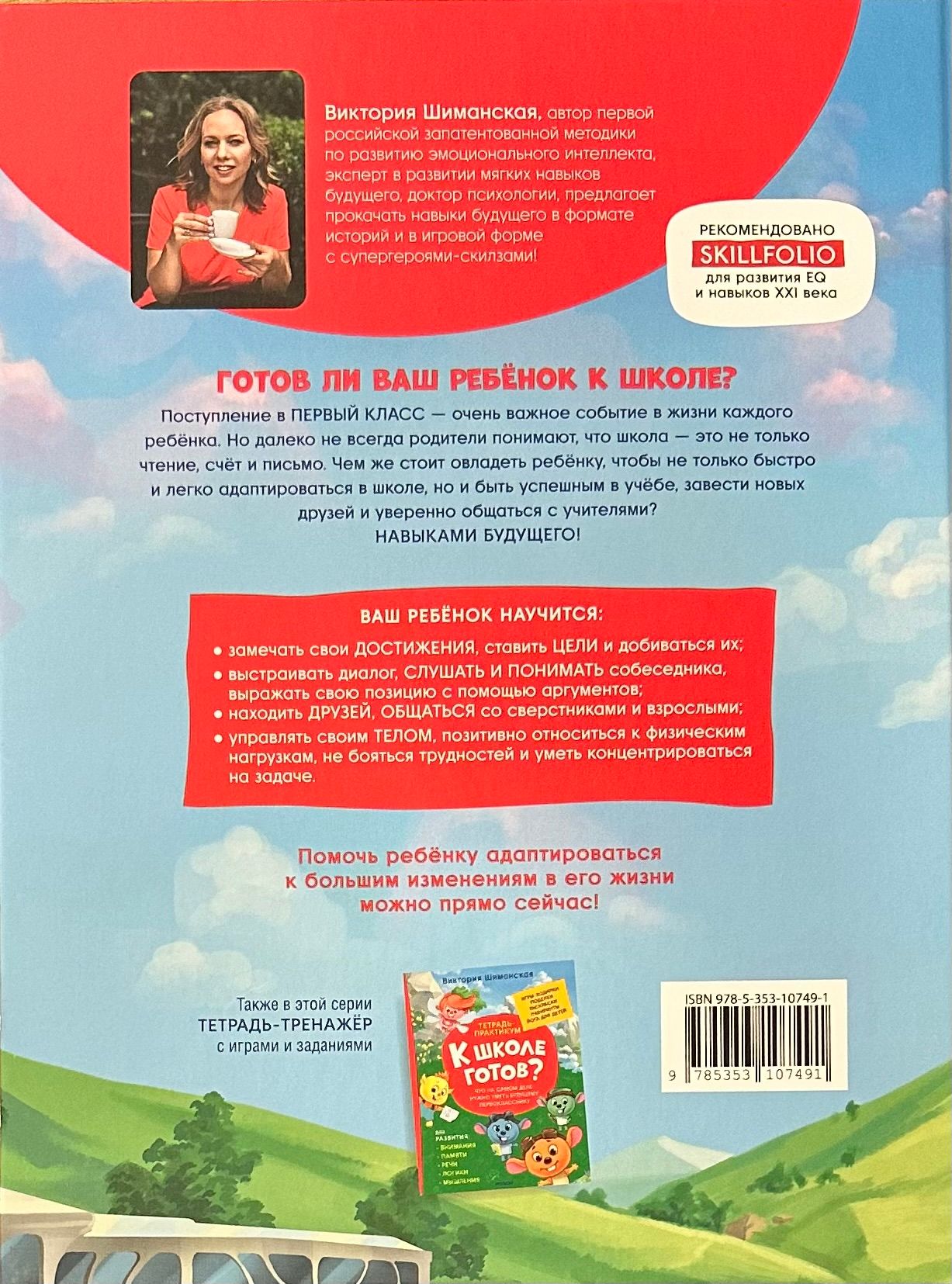 Книга поможет будущему первокласснику сформировать важные социальные и эмоциональные навыки, необходимые для успешной учёбы и адаптации в школе. А также справляться с возросшими физическими нагрузками; концентрироваться на задаче и  планировать время; ставить цели и замечать достижения;  аргументированно выражать свою позицию; выстраивать диалог и не бояться общаться со сверстниками и взрослыми.