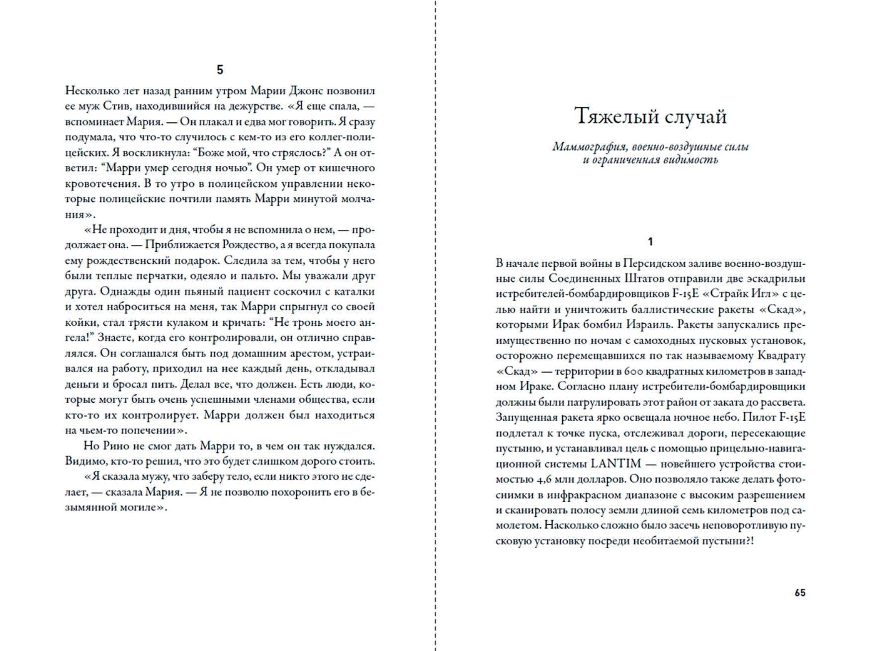 Автор мировых бестселлеров журналист New Yorker Малкольм Гладуэлл рассматривает самые разные вещи — деятельность разведчиков, поиск талантливых сотрудников, рецептуру кетчупа, методы дрессировки собак, инвестирование в ценные бумаги, техногенные катастрофы — под таким углом, что невольно удивляешься, как мало мы знаем, как часто заблуждаемся, как много интересного скрыто в самых обычных предметах, явлениях, людях.