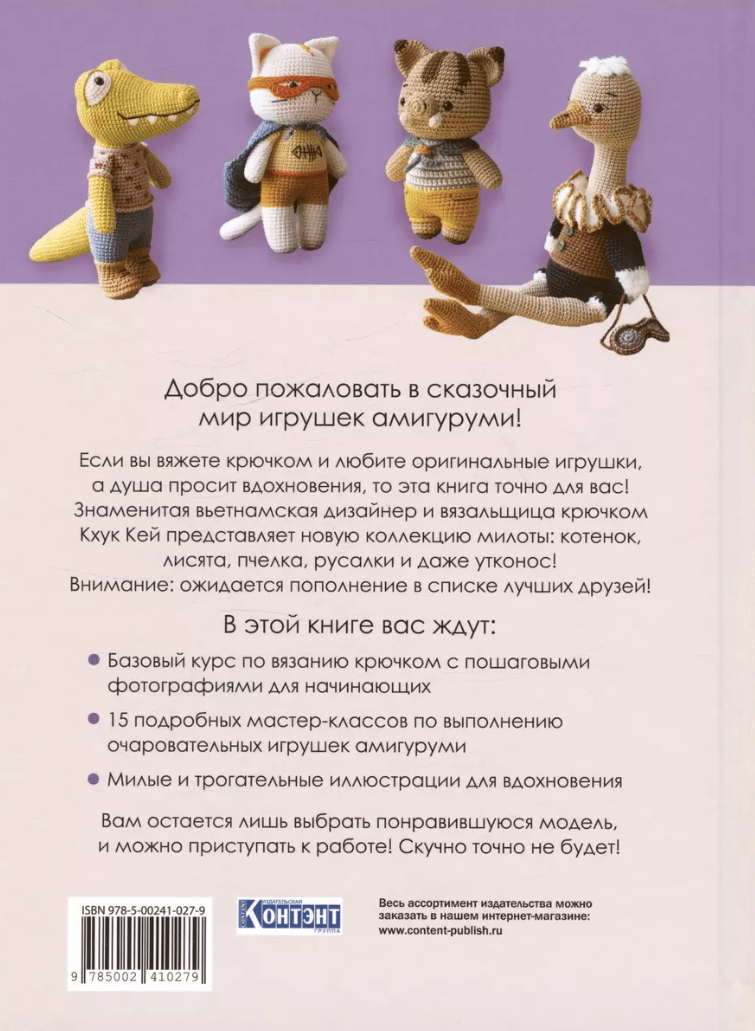 Добро пожаловать в сказочный мир игрушек амигуруми! Если вы вяжете крючком и любите оригинальные игрушки, а душа просит вдохновения, то эта книга точно для вас! Знаменитая вьетнамская дизайнер и вязальщица крючком Кхук Кей представляет новую коллекцию милоты: котенок, лисята, пчелка, русалки и даже утконос!