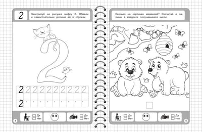 Книга издательства «Эксмо» — это настоящая находка для родителей, чьи дети скоро пойдут в 1 класс. Пособие, соответствующее ФГОС, четко структурировано и отлично подходит, чтобы начать знакомить ребенка с цифрами, так как первые знания дошкольник получает одновременно с развитием графических навыков. А написание цифр способствует их лучшему запоминанию. Крупные занимательные картинки будут мотивировать ребенка к занятиям. Занимаясь, дошкольник запомнит образ цифр, будет обводить их по контуру, писать в строчках самостоятельно и считать. Внизу каждой страницы имеются значки для оценки выполненных заданий. Поставив галочку в клетках «да» или «нет», ребенок сможет проконтролировать себя, а нарисовав ротик у смайлика вверх или вниз — оценить результат (хорошо / не очень хорошо). Постоянная работа с пособием поможет дошкольнику развить мелкую моторику, графические навыки, внимание, творческие способности, стать более усидчивым и аккуратным.