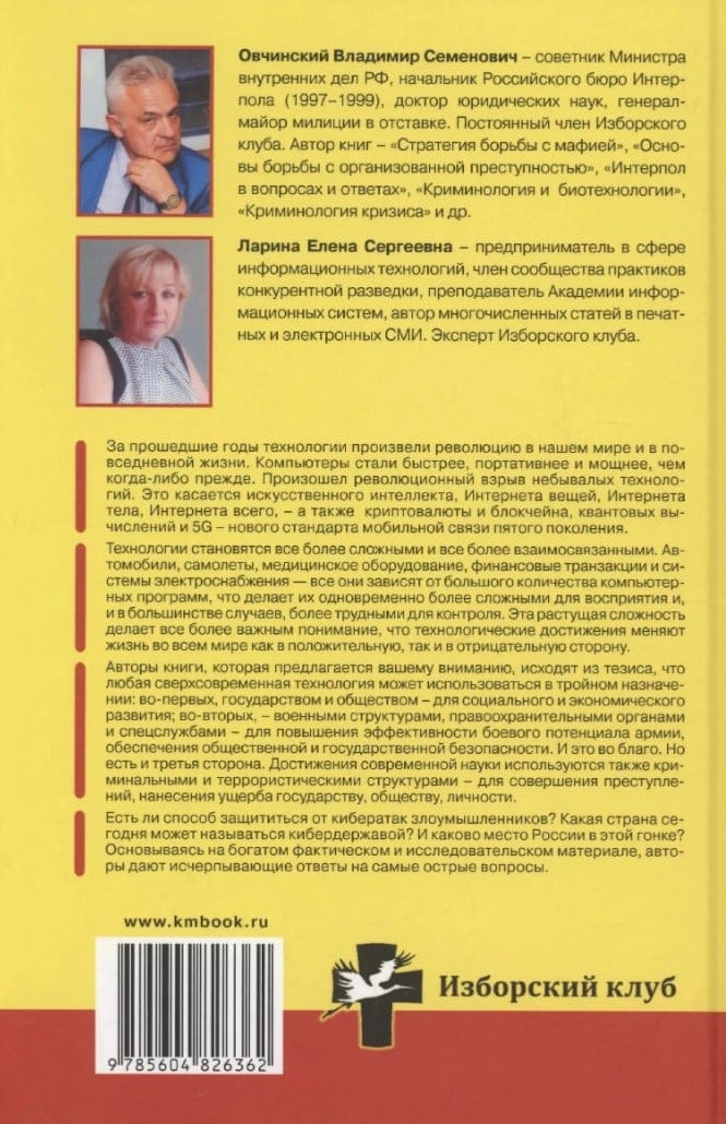 За прошедшие годы технологии произвели революцию в нашем мире и в повседневной жизни. Компьютеры стали быстрее, портативнее и мощнее, чем когда- либо прежде. Произошел революционный взрыв небывалых технологий. Это касается искусственного интеллекта, Интернета вещей, Интернета тела, Интернета всего,- а также криптовалюты и блокчейна, квантовых вычислений и 5G – нового стандарта мобильной связи пятого поколения. Технологии становятся все более сложными и все более взаимосвязанными. Автомобили, самолеты, медицинское оборудование, финансовые транзакции и системы электроснабжения – все они зависят от большого количества компьютерных программ, что делает их одновременно более сложными для восприятия и, в большинстве случаев, более трудными для контроля. Эта растущая сложность делает все более важным понимание, что технологические достижения меняют жизнь во всем мире как в положительную, так и в отрицательную сторону. Авторы книги, которая предлагается вашему вниманию, исходят из тезиса, что любая сверхсовременная технология может использоваться в тройном назначении: во-первых, государством и обществом – для социального и экономического развития; во-вторых, – военными структурами, правоохранительными органами и спецслужбами – для повышения эффективности боевого потенциала армии, обеспечения общественной и государственной безопасности. И это во благо. Но есть и третья сторона. Достижения современной науки используются также криминальными и террористическими структурами – для совершения преступлений, нанесения ущерба государству, обществу, личности. Есть ли способ защититься от кибератак злоумышленников? Какая страна сегодня может называться кибердержавой? И каково место России в этой гонке? Основываясь на богатом фактическом и исследовательском материале, авторы дают исчерпывающие ответы на самые острые вопросы.