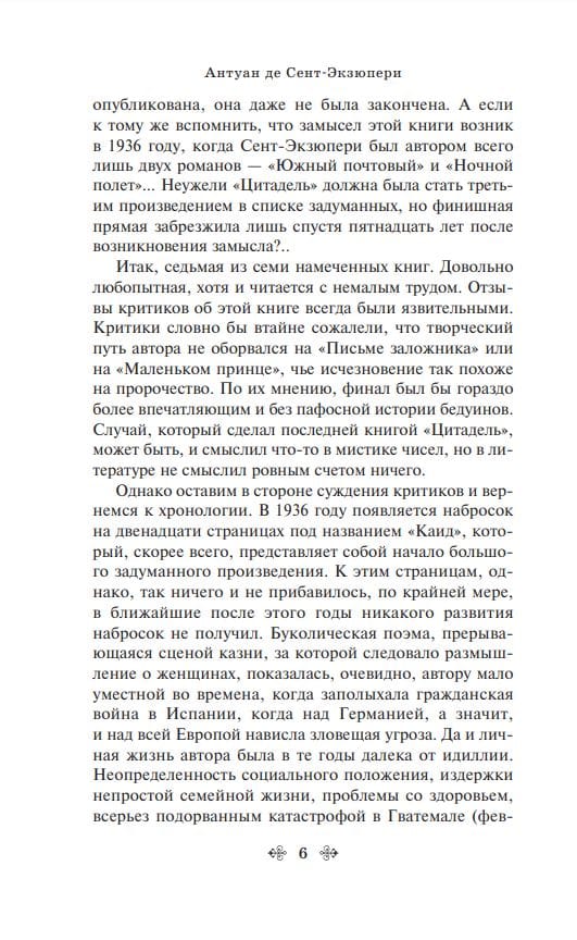 «Цитадель» — величайшее творение Антуана де Сент-Экзюпери, вершина его художественной философии. Эта мощная, несокрушимая литературная крепость возводилась писателем в течение долгих лет с максимальной отдачей и бесконечной любовью.