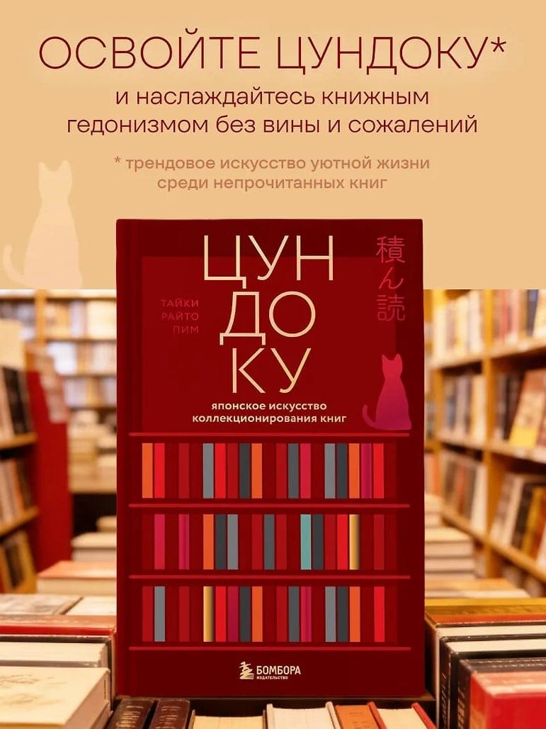 Японское слово «цундоку» состоит из двух иероглифов: «укладка» и «чтение». Жить среди непрочитанных книг и чувствовать себя при этом свободно — и есть тонкое искусство цундоку, освоить которое стоит каждому, кто частенько посещает книжные выставки и магазины.