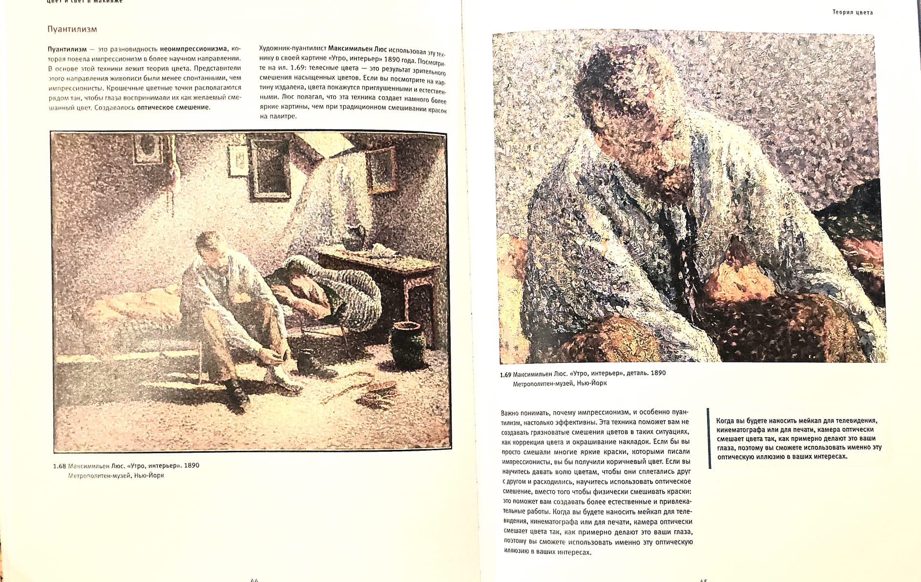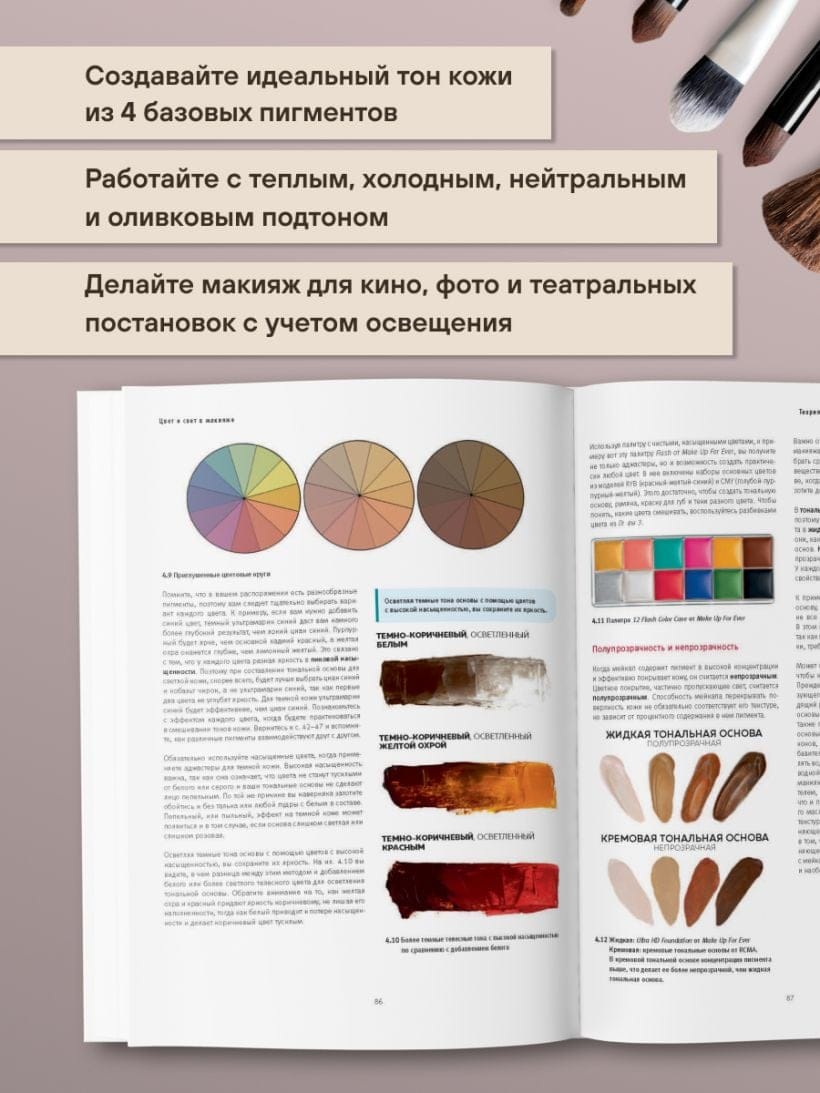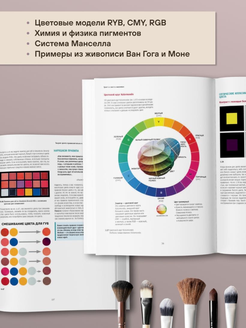 Книга богато иллюстрирована — в ней представлены цветовые схемы, палитры, подробные визуальные разборы макияжа, примеры из классической живописи, фрагменты полотен великих художников. Благодаря этому теория превращается в наглядный курс, где каждый пример можно применить на практике.