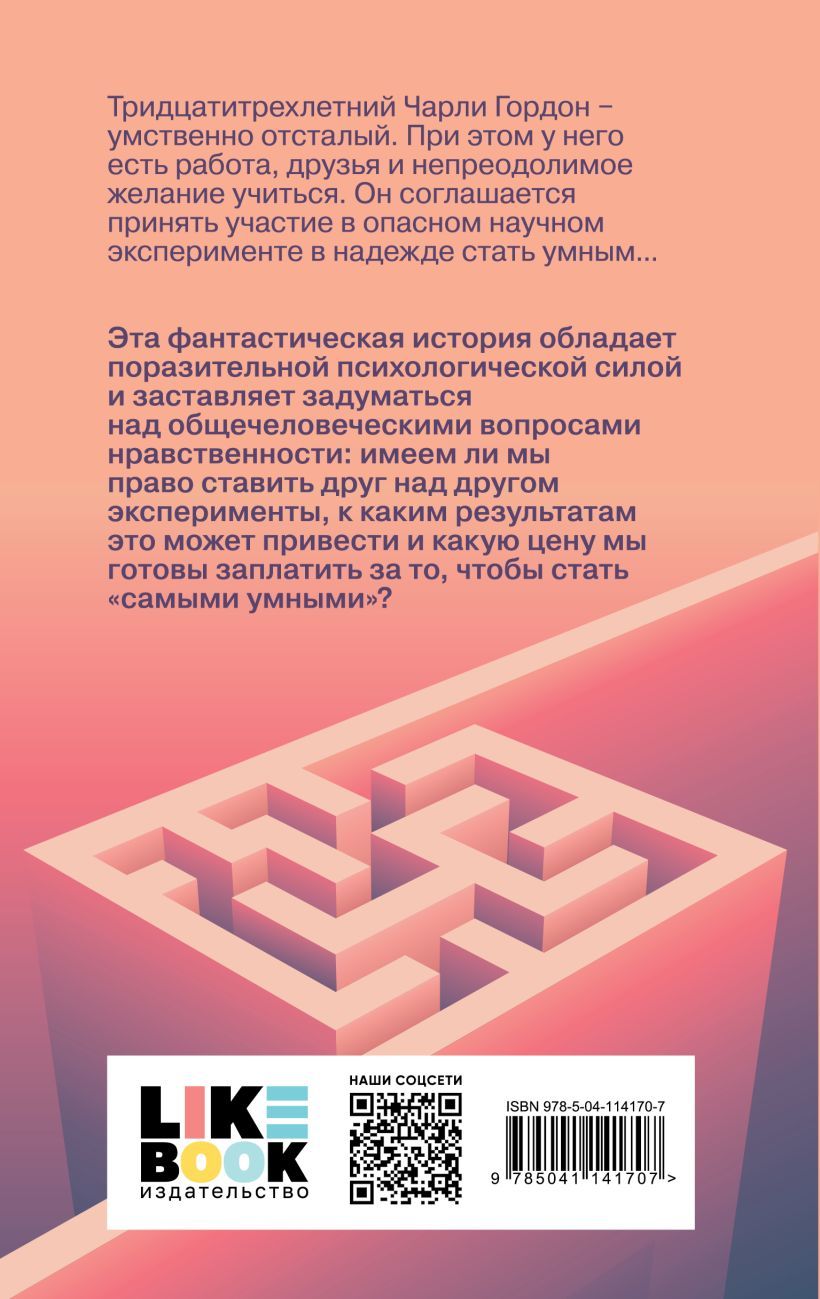 Тридцатитрехлетний Чарли Гордон - умственно отсталый. При этом у него есть работа, друзья и непреодолимое желание учиться. Он соглашается принять участие в опасном научном эксперименте в надежде стать умным... Эта фантастическая история обладает поразительной психологической силой и заставляет задуматься над общечеловеческими вопросами нравственности: имеем ли мы право ставить друг над другом эксперименты, к каким результатам это может привести и какую цену мы готовы заплатить за то, чтобы стать "самым умным"?