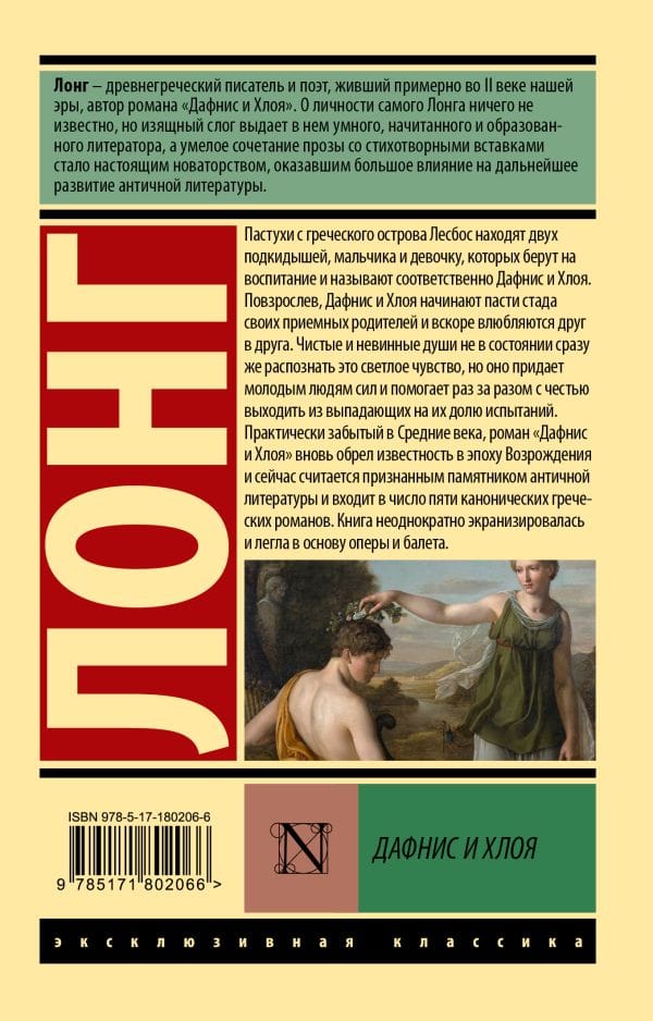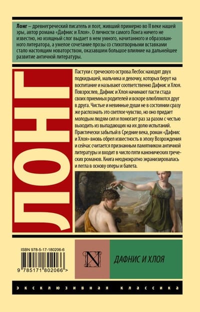 Античный пасторальный роман о первой любви, ставший одним из пяти канонических греческих романов и ключевым текстом для европейской пасторальной традиции. Действие происходит на острове Лесбос, среди пастухов, виноградников и морских заливов, а тон рассказа соединяет идиллию сельской жизни с тонким психологическим наблюдением.