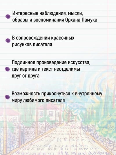 Записные книжки Орхана Памука не только позволяют прикоснуться к внутреннему миру любимого писателя, но и являются подлинным произведением искусства, где рисунок и текст неотделимы друг от друга, как неотделимы человек и его воспоминания.