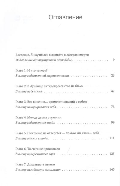 Эта книга — практическое и вдохновляющее руководство по исцелению души и обретению внутренней свободы. Эдит Ева Эгер мягко подсказывает путь изменения мыслей и поведения, удерживающих нас в плену, разбирает двенадцать распространенных деструктивных психологических установок и предлагает инструменты для их устранения.