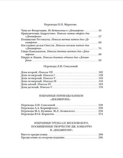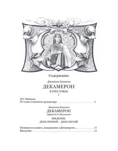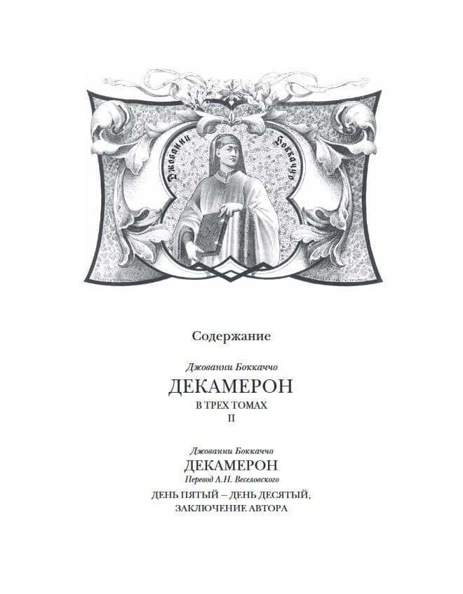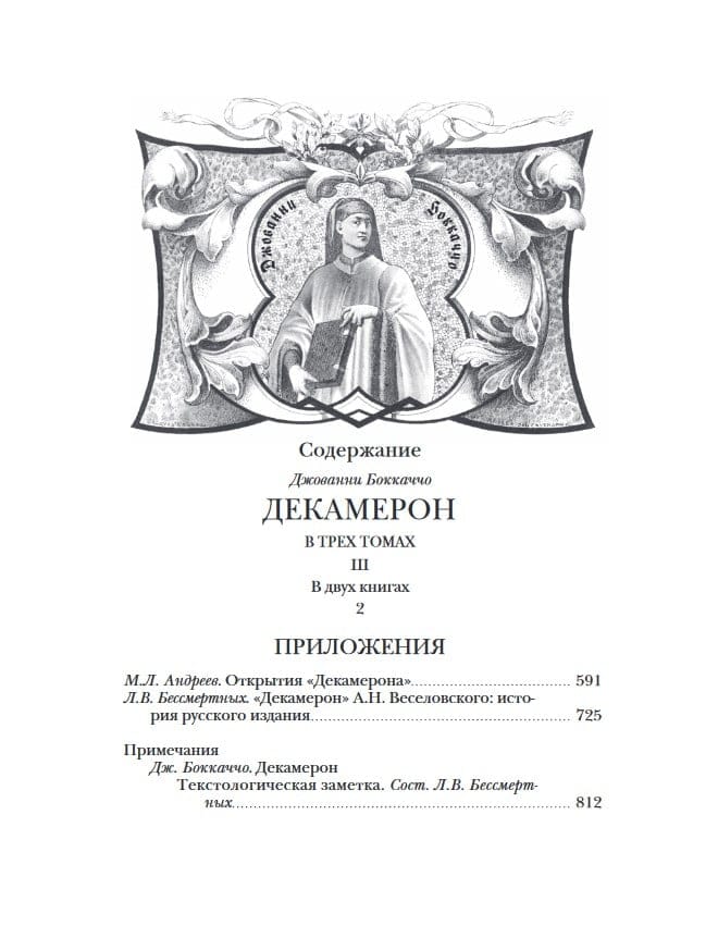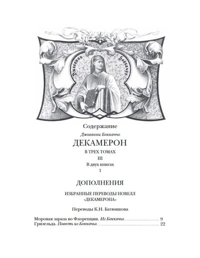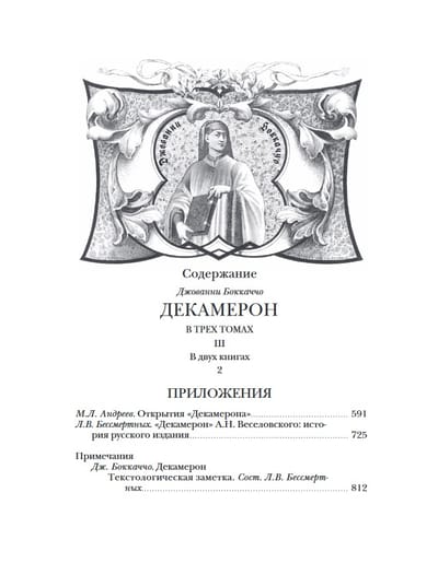 Издание в 3 томах (4 книгах). Одна из самых прославленных книг в истории мировой литературы, свыше шести столетий вызывающая неугасающий интерес у самого широкого круга читателей. Большинство из ста новелл данного собрания посвящено теме любви. Новеллы рассказываются на протяжении десяти дней 1348 года в обществе десяти хорошо образованных и остроумных молодых людей, укрывшихся на вилле в предместье Флоренции, опустошаемой Черной смертью. В 1891–1892 годах был опубликован русский перевод «Декамерона», признанный ныне классическим. Выполнен он был корифеем отечественной науки академиком А.Н. Веселовским. С тех пор вторая редакция этого перевода (1896 г.) многократно тиражировалась. Меж тем с «бесцензурной» версией данного перевода могли познакомиться в те годы лишь немногие библиофилы, а до недавнего времени она считалась безвозвратно утраченной. Именно она и воспроизведена в первых двух томах настоящего издания без каких-либо изъятий, при этом была учтена последующая редактура, проведенная А.Н. Веселовским. Более того, в примечаниях раскрыты места, которые он посчитал неудобными для печати, в ряде случаев ограничившись их купированием, а чаще – дав их переложения. В двух книгах третьего тома опубликованы статья и комментарий к «Декамерону» известного исследователя классической итальянской литературы М.Л. Андреева, а также статья одного из крупнейших московских библиофилов Л.В. Бессмертных, подытоживающая его архивные разыскания. Сюда же включены тексты новелл и канцон в других русских переводах: К.Н. Батюшкова, П.П. Муратова, Л.И. Соколовой и др.; приводятся фрагменты работ А.Н. Веселовского, проясняющих его понимание Боккаччо, новеллистического жанра и эпохи. Все эти материалы сопровождены обстоятельным комментарием.
