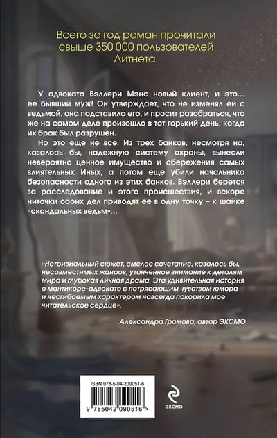 Но это еще не все. Из трех банков, несмотря на, казалось бы, надежную систему охраны, вынесли невероятно ценное имущество и сбережения самых влиятельных Иных, а потом еще убили начальника безопасности одного из этих банков. Вэллери берется за расследование и этого происшествия, и вскоре ниточки обоих дел приводят ее в одну точку — к шайке «скандальных ведьм»…