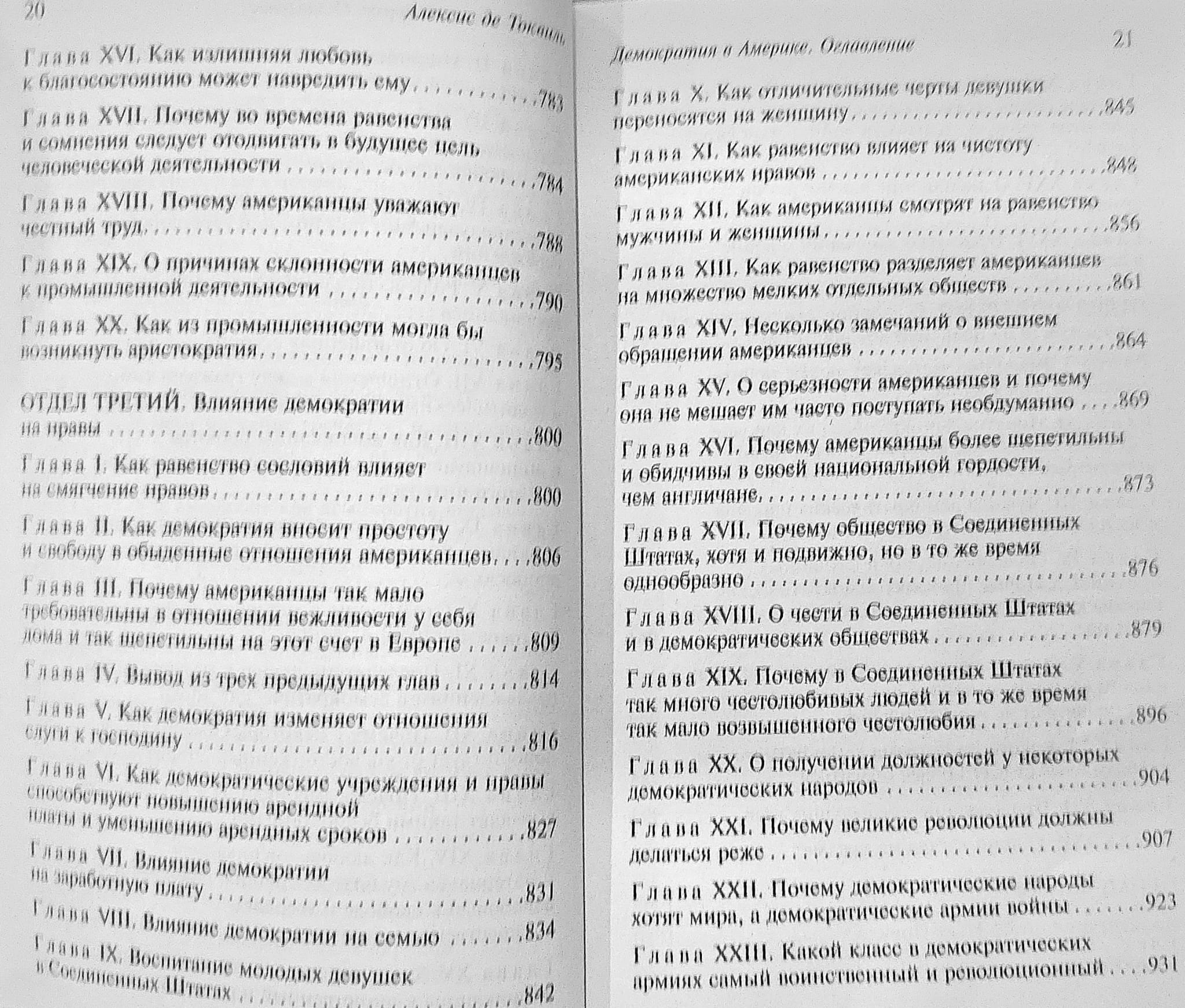 Трактат важен не только как анализ американского опыта, но и как размышление о судьбе Европы: де Токвиль постоянно сопоставляет США и Францию, обсуждает опасности тирании большинства, рост бюрократии и «мягкого деспотизма».