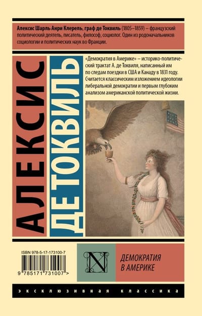 Книга «Демократия в Америке» — классический трактат о демократическом устройстве американского общества, написанный по следам поездки в США и Канаду в 1831. «Демократия в Америке» — один из ключевых текстов либеральной демократии и «первый глубокий анализ американской политической жизни», к этой книге до сих пор обращаются политологи, социологи и историки.