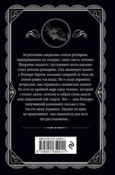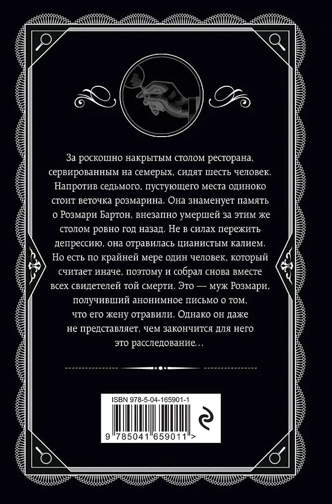 За роскошно накрытым столом ресторана, сервированным на семерых, сидят шесть человек. Напротив седьмого, пустующего места одиноко стоит веточка розмарина. Она знаменует память о Розмари Бартон, внезапно умершей за этим же столом ровно год назад. Не в силах пережить депрессию, она отравилась цианистым калием. Но есть по крайней мере один человек, который считает иначе, поэтому и собрал снова вместе всех свидетелей той смерти. Это — муж Розмари, получивший анонимное письмо о том, что его жену отравили. Однако он даже не представляет, чем закончится для него это расследование…