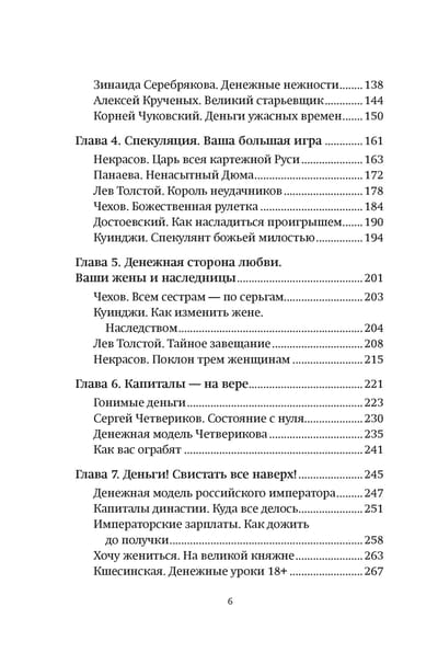 Ведь талант и слава вовсе не гарантируют человеку богатства и процветания и не являются абсолютной защитой от нищеты. Почему семья Пушкина постоянно была в долгах, а Бунин растратил под ноль даже Нобелевскую премию? Почему Чехов сумел купить виллу в Крыму, а Некрасов оставил наследство сразу трем любимым женщинам? Как прошлась по капиталам знаменитостей Октябрьская революция? Как формировался личный бюджет династии Романовых и советских вождей?