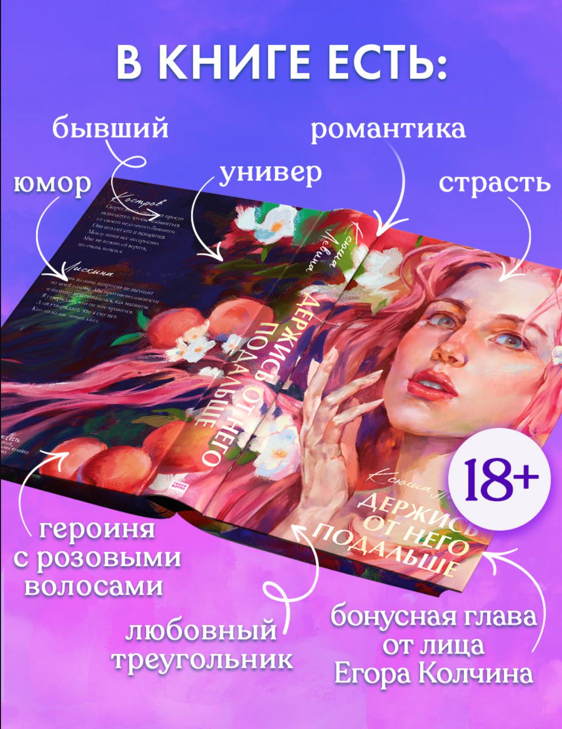 Бестселлер Ксюши Левиной в новой серии Trendbooks Summer. Чувственная история о том, как пережить расставание, найти себя и новую любовь, в невероятном оформлении с атмосферной рисованной обложкой. Роман «Держись от него подальше» — это история обычной девушки, которая нашла в себе силы разорвать мучительные отношения и снова стать собой — сильной, смелой и дерзкой. Расставание и поиск себя, юмор и драма — все это делает книгу незабываемой.