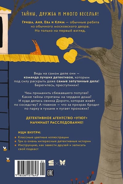 Чем приманить сбежавшего попугая? Какие тайны спрятаны на чердаке дома? И куда делась свинка Дороти, которая живёт по соседству? А главное – что за призрак бродит по парку в тумане и пугает прохожих? Детективное агентство «Утюг» начинает расследование!
