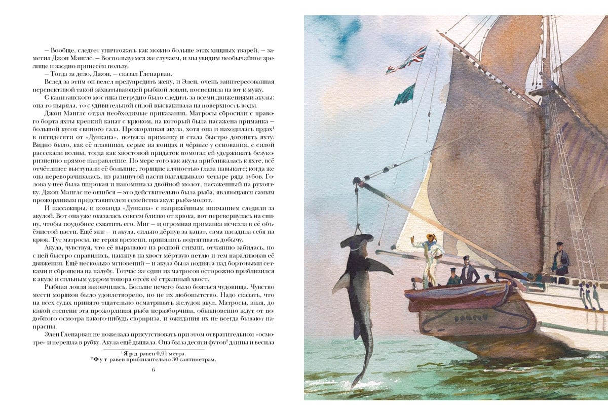 «Дети капитана Гранта» — один из самых известных романов Жюля Верна, где увлекательные приключения умело переплетаются со множеством интересных географических и исторических фактов. Однажды экипаж яхты «Дункан» обнаруживает в животе пойманной акулы записку капитана Гранта, потерпевшего кораблекрушение. Владельцы яхты Лорд Гленарван и его супруга решают организовать спасательную экспедицию. Героев романа ждёт захватывающее путешествие по тридцать седьмой параллели, неведомые страны и новые открытия. Книга проиллюстрирована известным русским художником Анатолием Зиновьевичем Иткиным, мастером историко-приключенческого жанра, создавшим иллюстрации более чем к двумстам произведениям русской и зарубежной классики.