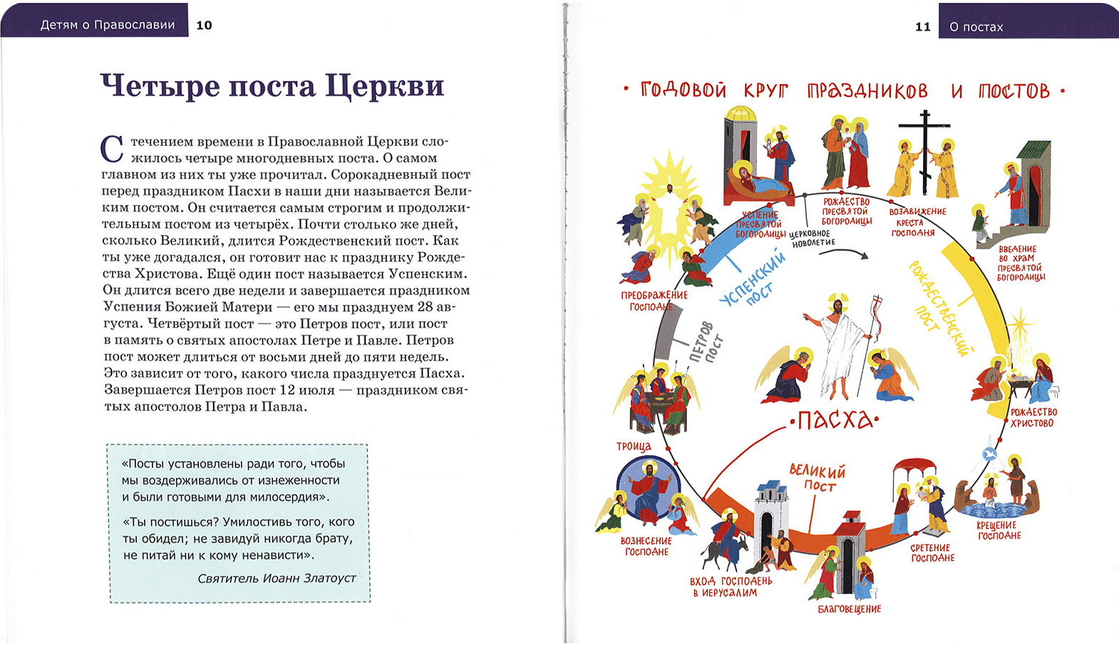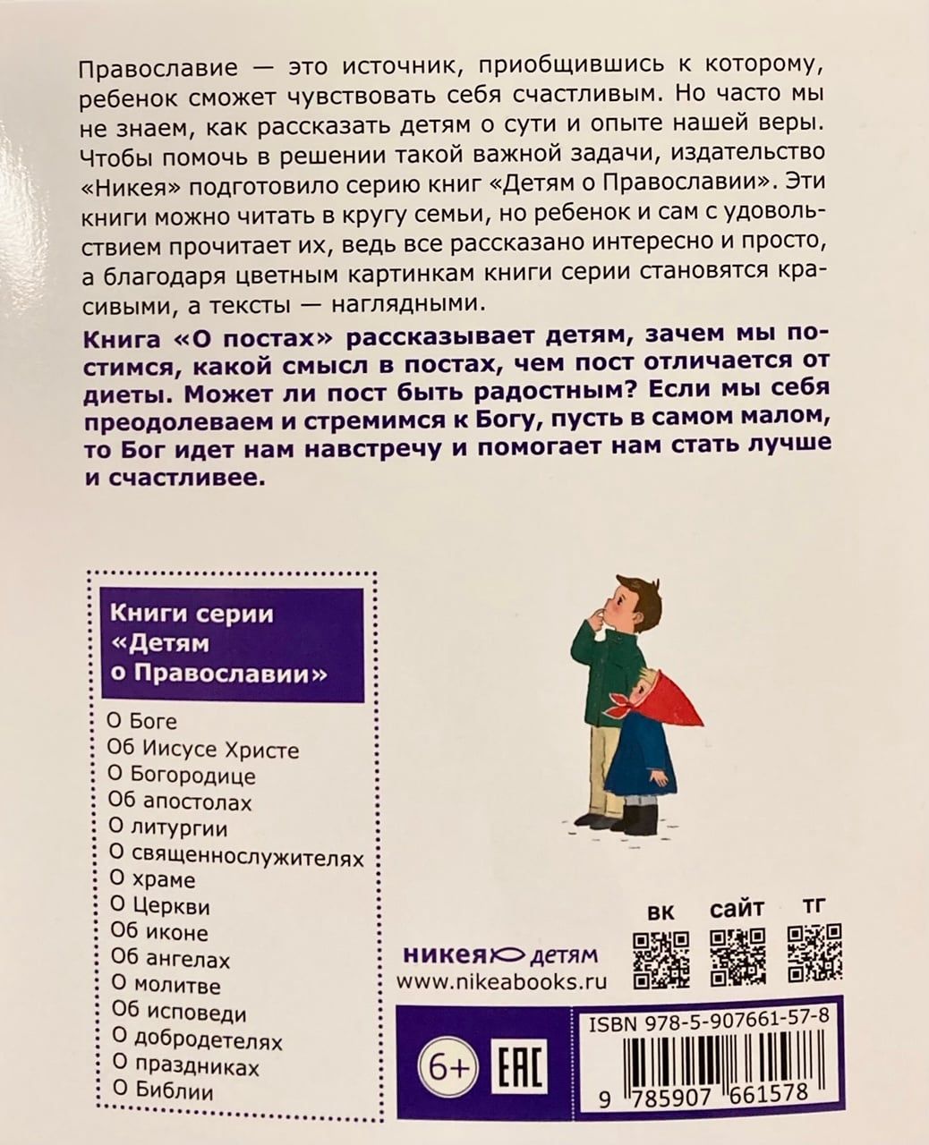 Эта иллюстрированная книга в доступной форме рассказывает детям, зачем необходимо поститься, какой смысл в постах, чем пост отличается от диеты. Может ли пост быть радостным? В чем заключается великопостная молитва преподобного Ефрема Сирина?