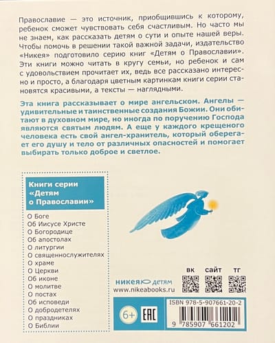 Эта книга рассказывает о мире ангельском. Ангелы — удивительные и таинственные создания Божии. Они обитают в духовном мире, но иногда являются святым людям. А еще у каждого крещеного человека есть свой ангел-хранитель, который оберегает его.