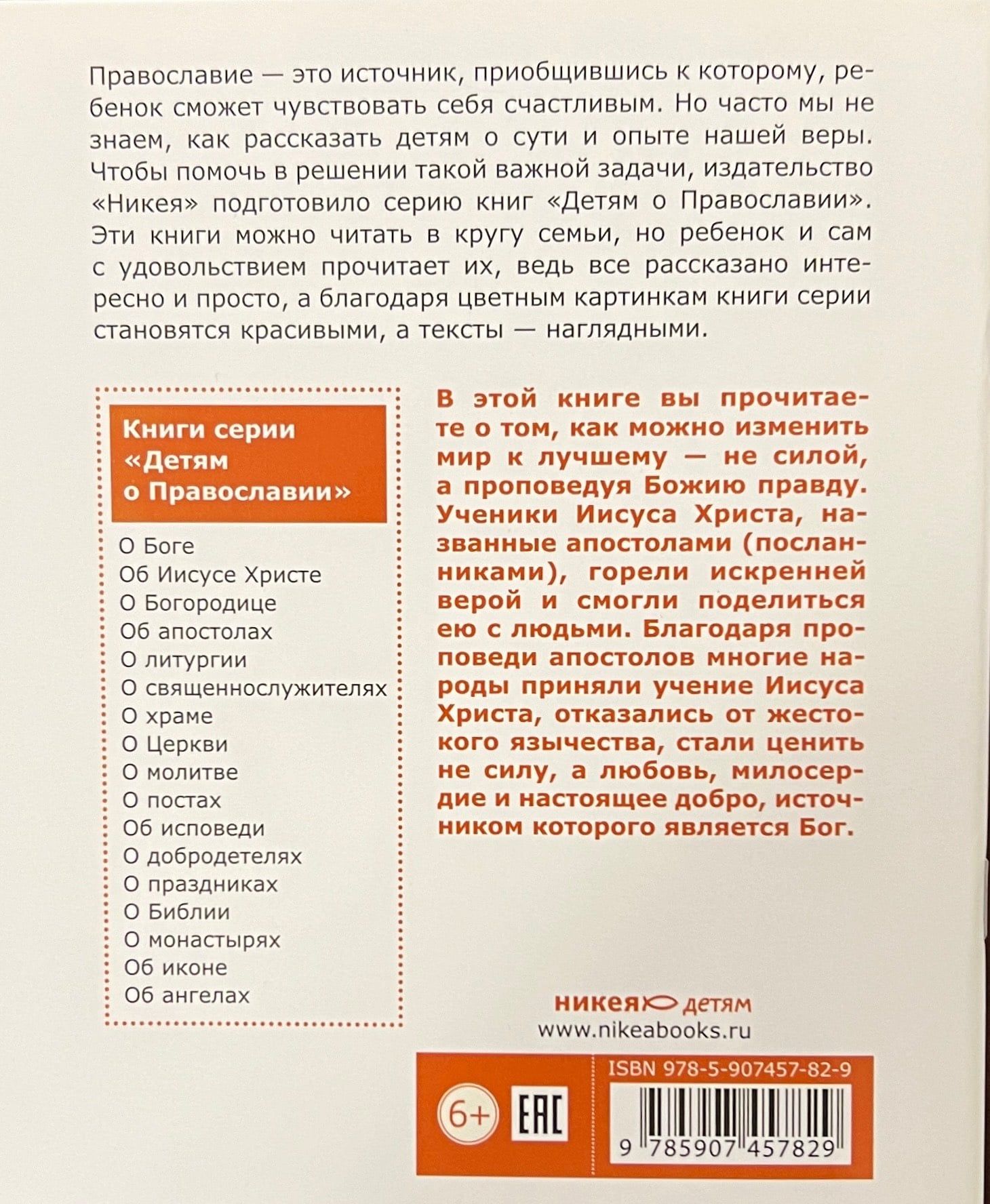 В книге рассказывается об учениках Иисуса Христа, названных апостолами. Благодаря их проповеди многие народы приняли учение Спасителя, отказались от язычества, стали ценить не силу, а любовь, милосердие и добро, источником которого является Бог.
