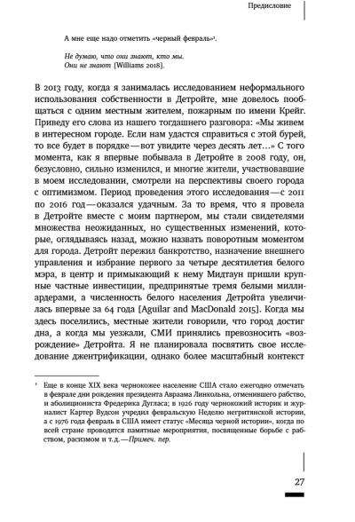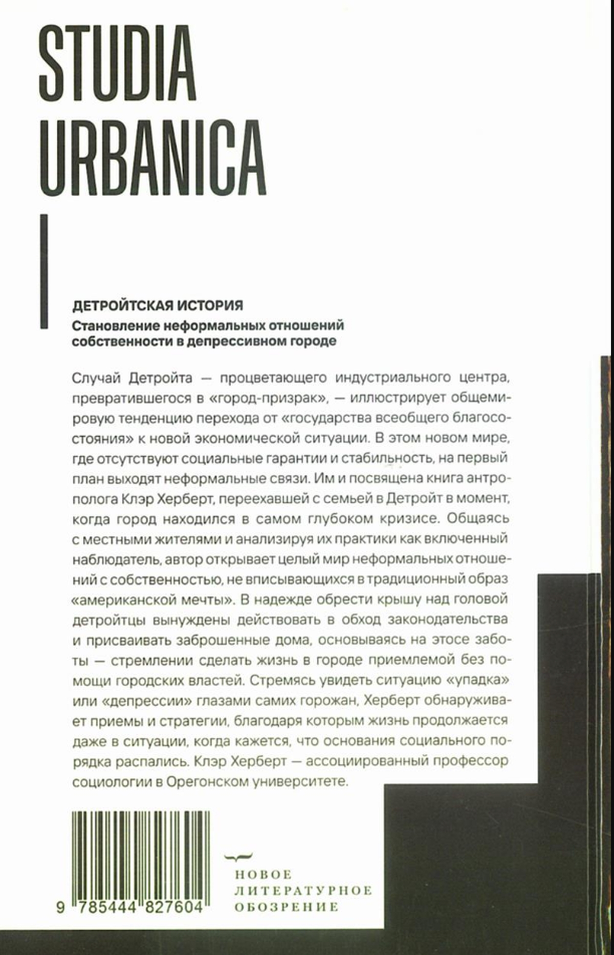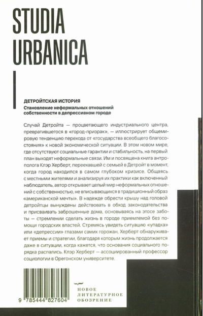 В этом новом мире, где отсутствуют социальные гарантии и стабильность, на первый план выходят неформальные связи. Им и посвящена книга антрополога Клэр Херберт, переехавшей с семьей в Детройт в момент, когда город находился в самом глубоком кризисе. Общаясь с местными жителями и анализируя их практики как включенный наблюдатель, автор открывает целый мир неформальных отношений с собственностью, не вписывающихся в традиционный образ «американской мечты».