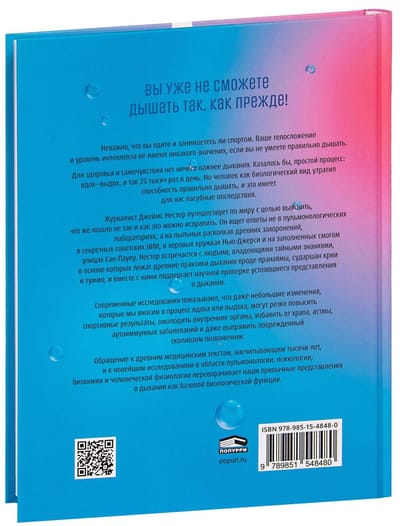 Обращение к древним медицинским текстам, насчитывающим тысячи лет, и к новейшим исследованиям в области пульмонологии, психологии, биохимии и человеческой физиологии переворачивает наши привычные представления о дыхании как базовой биологической функции.