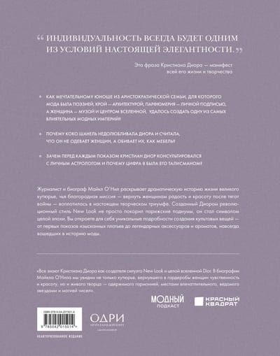 Захватывающая биография легендарного кутюрье, чья страсть к красоте и любовь к женщинам изменила мир моды навсегда. Журналист и биограф Майкл О’Нил создает увлекательную хронику жизни Кристиана Диора — от безмятежных дней на семейной вилле в живописных садах Гранвиля до создания модной империи. Книга рассказывает о том, как новаторство, уникальное видение и художественный дар Диора произвели настоящую модную революцию и позволили ему подняться на самую вершину парижского от-кутюр. Вы узнаете о тайных символах в коллекциях и личных талисманах кутюрье, которые помогали ему создавать неповторимые шедевры, откроете для себя уникальные подробности создания культовых вещей — от первых показов изысканных платьев до легендарных аксессуаров и ароматов, навсегда вошедших в историю моды.