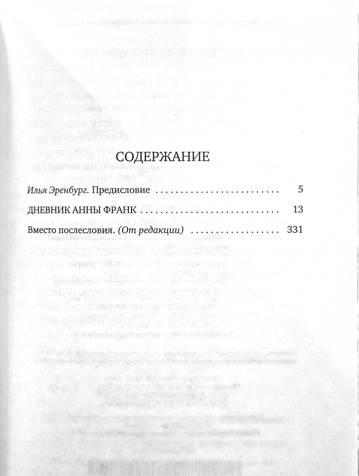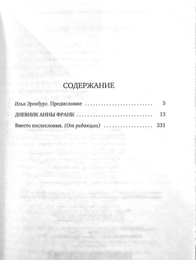 В книге представлен «Дневник Анны Франк» в переводе Риты Райт-Ковалевой с предисловием Ильи Эренбурга.
