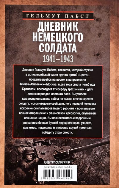 Дневник Гельмута Пабста повествует о трех зимних и двух летних периодах жестоких боев группы армий «Центр», продвигавшейся на восток в направлении Белосток—Минск—Смоленск—Москва. Вы узнаете, как воспринималась война не только солдатом, исполняющим свой долг, но человеком, искренне симпатизировавшим русским и проявившим полное отвращение к нацистской идеологии.