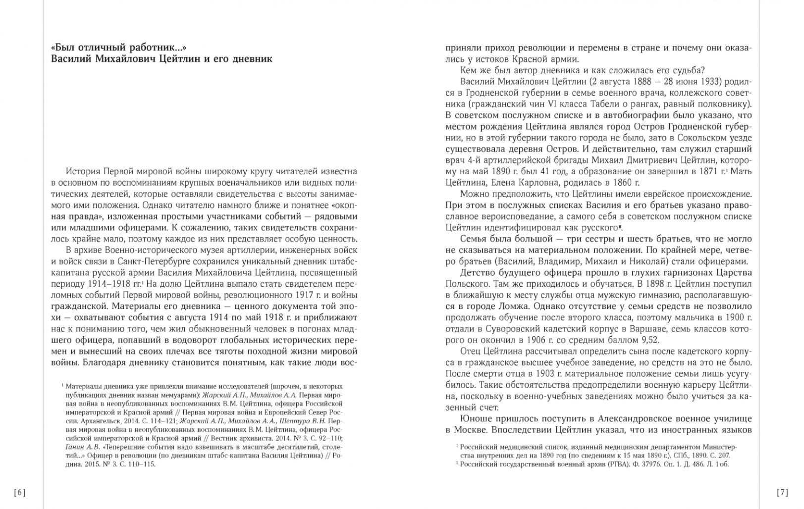 Дневник штабс-капитана В. М. Цейтлина представляет собой интересное свидетельство участника Первой мировой войны, очевидца революционных потрясений в Петрограде (в том числе непосредственно большевистского переворота 25 октября 1917 г.) и одного из первых советских военных специалистов. Дневник отражает состояние боевых частей и штабов русской армии в Первую мировую войну, жизнь военной академии в конце 1917 — начале 1918 г., первые шаги по созданию Красной армии. Много внимания В. М. Цейтлин уделяет анализу причин неудач русских войск, размышляет о революционных событиях и процессах, изменивших путь развития России. Издание снабжено биографией автора дневника, комментариями и документальными приложениями.