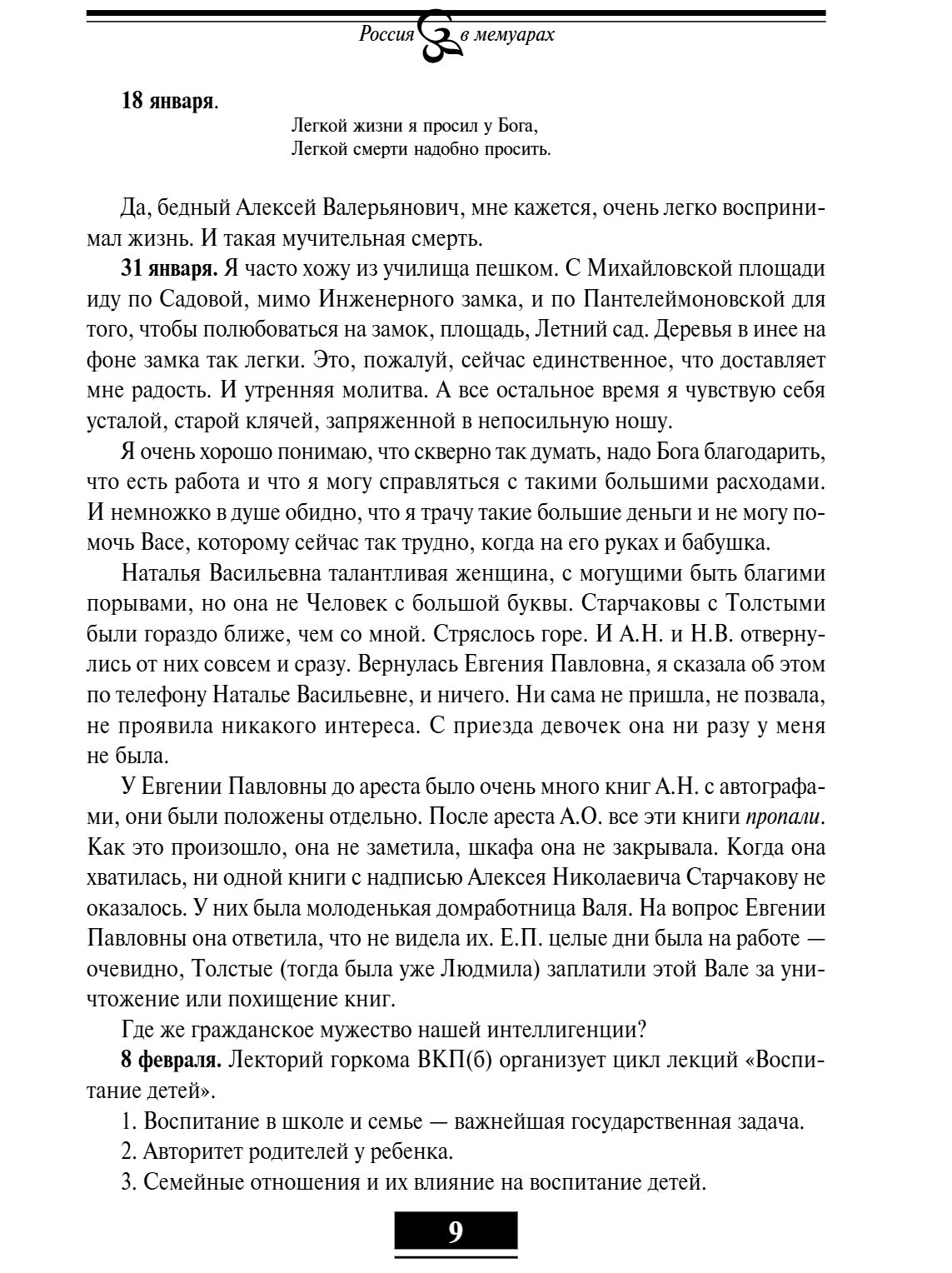 Любовь Васильевна Шапорина (1879—1967) — создательница первого в советской России театра марионеток, художница, переводчица. Впервые публикуемый ее дневник — явление уникальное среди отечественных дневников XX века. Он велся с 1920-х по 1960-е годы и не имеет себе равных как по продолжительности и тематическому охвату (политика, экономика, религия, быт города и деревни, блокада Ленинграда, политические репрессии, деятельность НКВД, литературная жизнь, музыка, живопись, театр и т.д.), так и по остроте критического отношения к советской власти. В книге нашло отражение близкое знакомство Шапориной с А. А. Ахматовой, А. П. Остроумовой-Лебедевой, Н. С. Тихоновым, А. Н. Толстым, Д. Д. Шостаковичем, М. В. Юдиной и многими другими известными современниками.