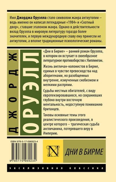 «Дни в Бирме» – ранний роман Оруэлла, в котором он вступает в своеобразное литературное противоборство с Киплингом.