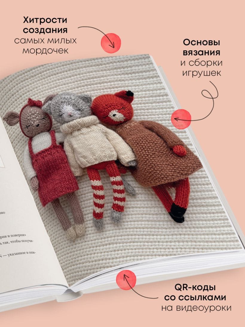 Шаг за шагом, следуя подробным объяснениям с многочисленными фотографиями, вы научитесь вязать на спицах очаровательные игрушки, вызывающие восторг, умиление и огромный интерес у окружающих. Ими можно не только любоваться и дарить близким, в них можно играть! Спящие или бодрствующие, каждый образ не похож на другой, каждый персонаж обладает собственным характером и неповторимой харизмой. И даже немного похож на кого-то из ваших знакомых. Ведь чтобы подчеркнуть индивидуальность, автор снабдила вязаных малышей одеждой и крохотными аксессуарами!
