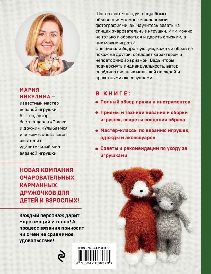 Новая компания очаровательных карманных дружочков, связанных на спицах, от автора бестселлеров «Свяжи и дружи» и «Улыбаемся и вяжем» Марии Никулиной!