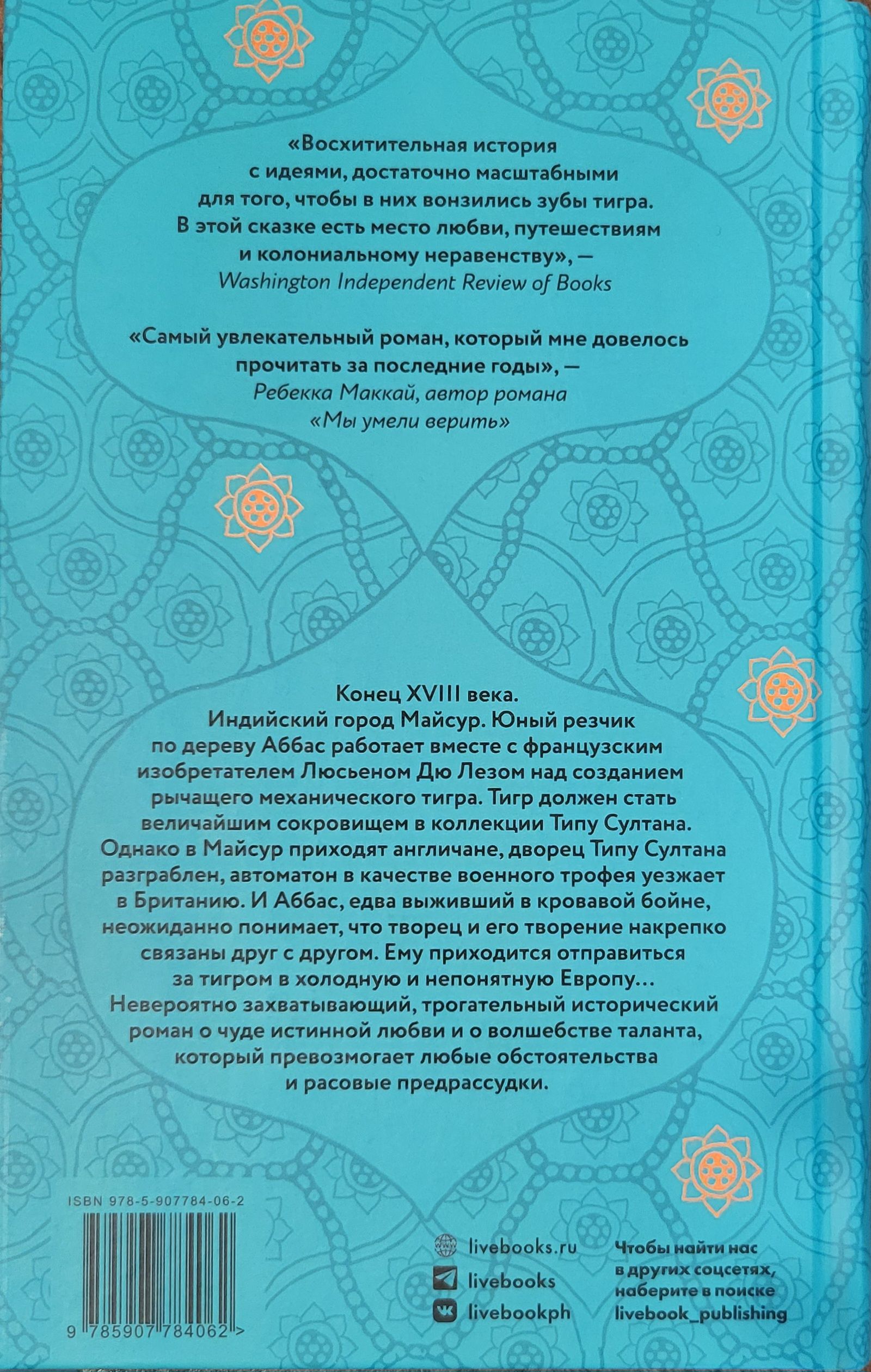 Конец ХVIII века. Индийский город Майсур. Юный резчик по дереву Аббас работает вместе с французским изобретателем Люсьеном Дю Лезом над созданием рычащего механического тигра. Тигр должен стать величайшим сокровищем в коллекции Типу Султана. Однако в Майсур приходят англичане, дворец Типу Султана разграблен, автоматон в качестве военного трофея уезжает в Британию. И Аббас, едва выживший в кровавой бойне, неожиданно понимает, что творец и его творение накрепко связаны друг с другом. Ему приходится отправиться за тигром в холодную и непонятную Европу…