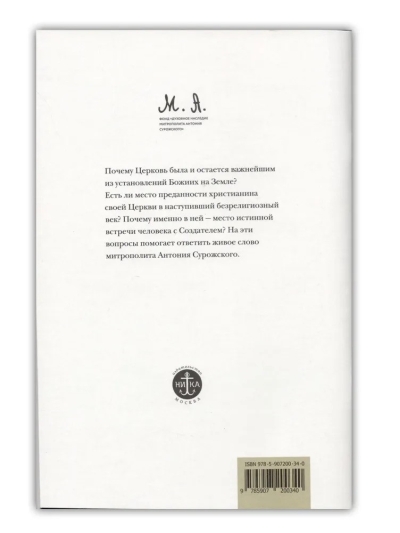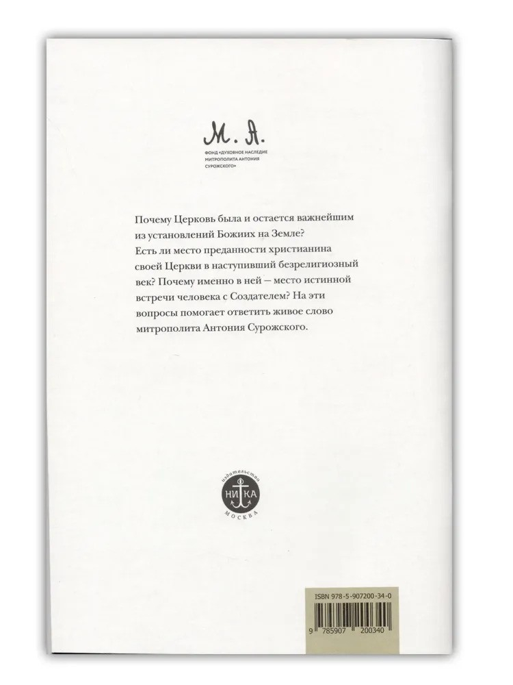 Три беседы о церкви Почему Церковь была и остается важнейшим из установлений Божиих на Земле? Есть ли место преданности христианина своей Церкви в наступивший безрелигиозный век? Почему именно в ней - место истинной встречи человека с Создателем? На эти вопросы помогает ответить живое слово митрополита Антония Сурожского. Книга подготовлена как часть памятных мероприятий «Года митрополита Антония», no-летний юбилей которого отмечается в 2024 г. Адресована широкому кругу читателей.
