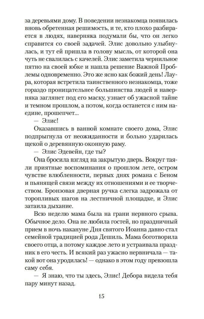 Июнь 1933 года. Родовое имение семьи Эдевейн в Корнуолле сверкает, готовое к долгожданной вечеринке в канун Дня святого Иоанна. Элис Эдевейн, шестнадцатилетняя начинающая писательница, особенно взволнована. Она не только придумала идеальный поворот сюжета своего романа, но и по уши влюбилась. Однако, когда часы бьют полночь и фейерверк озаряет ночное небо, бесследно исчезает ее младший брат, а вскоре полиция находит мертвым близкого друга их семьи. Не выдержав столь сокрушительного удара, Эдевейны навсегда покидают родной дом.