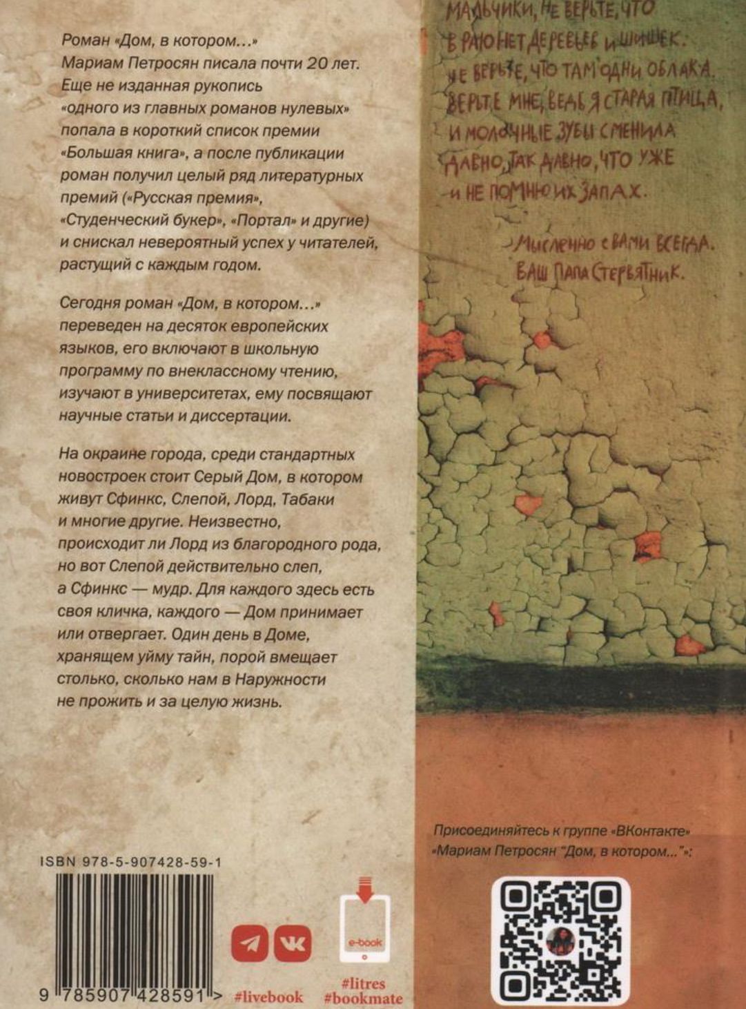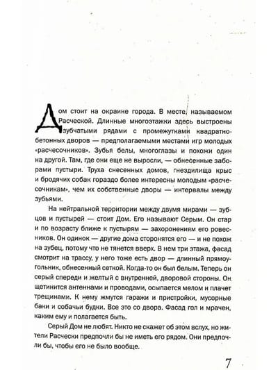 На окраине города, среди стандартных новостроек, стоит Серый Дом, в котором живут Сфинкс, Слепой, Лорд, Табаки, Македонский, Черный и многие другие. Неизвестно, действительно ли Лорд происходит из благородного рода драконов, но вот Слепой - действительно незряч, а Сфинкс - мудр и загадочен. Табаки, конечно, не шакал, хотя и любит поживиться чужим добром. Для каждого в Доме есть своя кличка и каждый проживал в нем за один день столько, сколько в Наружности мы иногда не проживаем и за целую жизнь. Каждого Дом принимал или отвергал. Дом хранил уйму тайн, и банальные «‎скелеты в шкафах»‎ - лишь самый понятный угол незримого мира, куда нет хода из Наружности, где перестают действовать привычные законы пространства-времени. Дом - это нечто гораздо большее, чем просто интернат для детей, от которых отказались родители. Дом - это их отдельная вселенная.