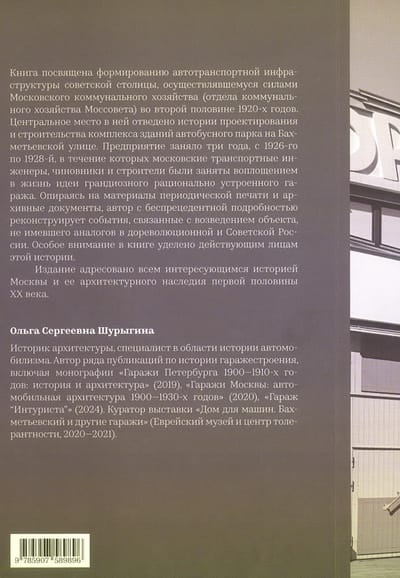 Книга посвящена формированию автотранспортной инфраструктуры советской столицы, осуществлявшемуся силами Московского коммунального хозяйства (отдела коммунального хозяйства Моссовета) во второй половине 1920‑х годов. Центральное место в ней отведено истории проектирования и строительства комплекса зданий автобусного парка на Бахметьевской улице. Предприятие заняло три года, с 1926‑го по 1928‑й, в течение которых московские транспортные инженеры, чиновники и строители были заняты воплощением в жизнь идеи грандиозного рационально устроенного гаража. Опираясь на материалы периодической печати и архивные документы, автор с беспрецедентной подробностью реконструирует события, связанные с возведением объекта, не имевшего аналогов в дореволюционной и Советской России. Особое внимание в книге уделено действующим лицам этой истории.