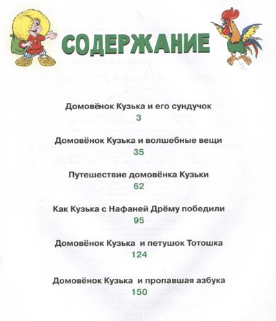 Приключения домовенка Кузьки уже давно полюбились маленьким читателям. В этом сборнике вас жду шесть сказок о приключениях любимого героя! Вместе со своими друзьями он одолеет злого волшебника Бубуню, который отобрал радость у лесных жителей, избавит округу от волшебных вещей, поможет петушку Тотошке разыскать голос, победит Дрёму Дремотную и отправится в путешествие на край света. А поможет Кузьке справиться со всеми напастями его заветный сундучок – ведь он не простой, а волшебный!..