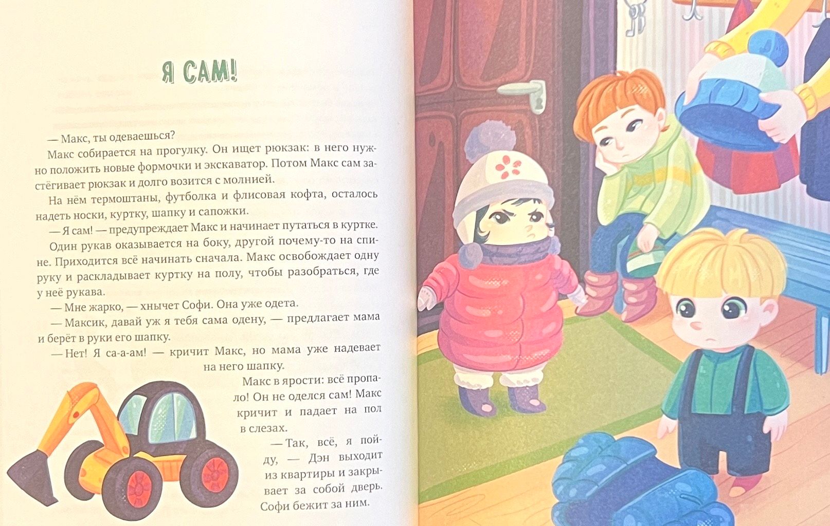 Максу скоро два года. У него есть старшие брат и сестра, Дэн и Софи, а еще недавно появился мудрый дракончик Дзинь, который знает, что делать, когда не хочется спать, почему пора проститься с соской, и как съесть с аппетитом даже то, что не нравится. Читая ребёнку вслух истории о Максе, Софи и Дэне, вы сможете вместе прожить сложные эмоциональные моменты, будете сопереживать героям, узнавать в них себя, примерять ситуации. В конце каждой истории есть раздел «Для родителей» с нескучной методологией и простыми упражнениями для комфортного проживания эмоциональных моментов.