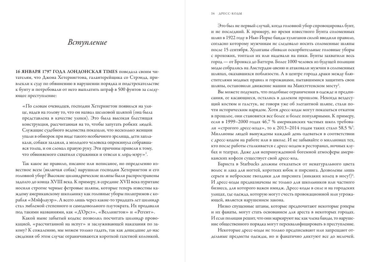 В этой книге вы найдете ответы на множество вопросов: почему в разные периоды истории одежда становилась настолько значимой, что ее статус регулировался договорами, правилами и даже строгими судебными решениями? Что происходило, когда эти правила вступали в противоречие с новыми социальными нормами, которые провозглашали личные свободы? Когда дресс-коды полезны, а когда становятся слишком строгими и нарушают права человека? Что делает высокие каблуки легкомысленными и сексуальными, а обувь на плоском ходу практичной, но скучной? Какую стратегию выбрать — следовать установленным правилам дресс-кодов или нарушать их ради свободы самовыражения? Давайте вместе попробуем разобраться в этом увлекательном, красивом, немного таинственном и запутанном мире моды.