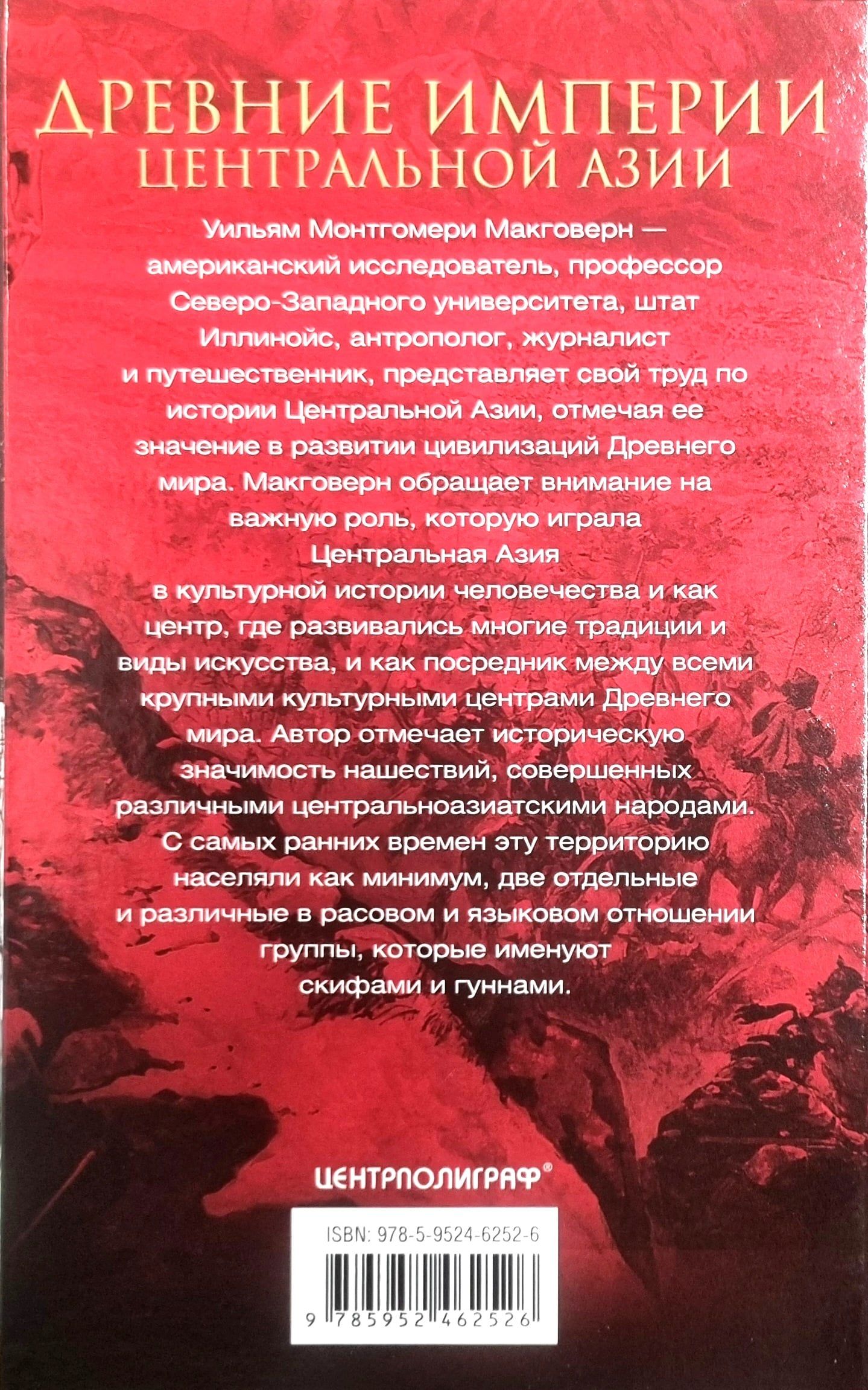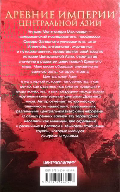 Уильям Монтгомери Макговерн — американский исследователь, профессор Северо-Западного университета, штат Иллинойс, антрополог, журналист и путешественник — представляет свой труд по истории Центральной Азии, отмечая ее значение в развитии цивилизаций Древнего мира. Макговерн обращает внимание на важную роль, которую играла Центральная Азия в культурной истории человечества и как центр, где развивались многие традиции и виды искусства, и как посредник между всеми крупными культурными центрами Древнего мира. Автор отмечает историческую значимость нашествий, совершенных различными центральноазиатскими народами. С самых ранних времен эту территорию населяли как минимум две отдельные и различные в расовом и языковом отношении группы, которые именуют скифами и гуннами.