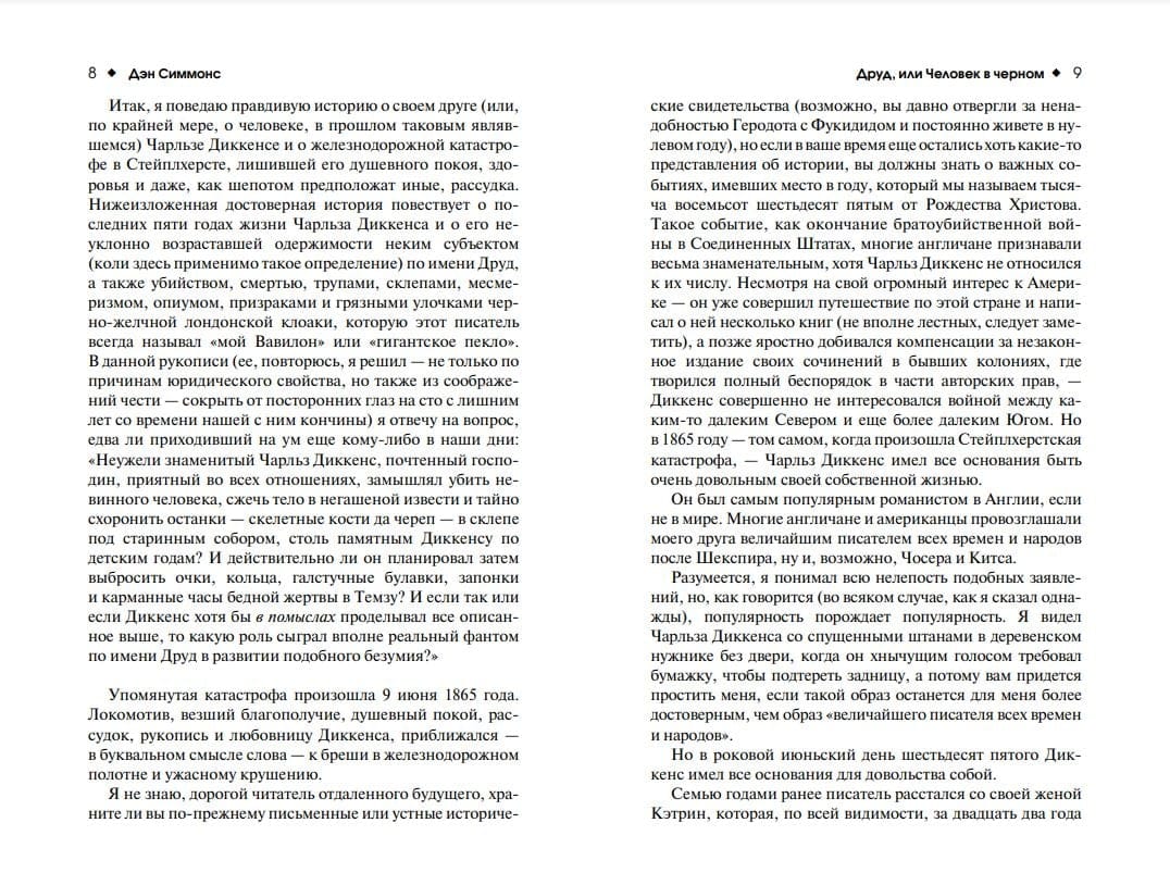 Но вот однажды безупречный конвейер бестселлеров дал сбой. Случилось это после железнодорожной катастрофы, в которой Диккенс выжил лишь чудом, в то время как сотни других пассажиров погибли. Растерянно бродя среди изуродованных тел, Диккенс встретил странного человека столь отталкивающей наружности, что тот вполне мог быть порождением кошмарного сна. Человек назвался Друдом и пригласил Диккенса к себе в гости...