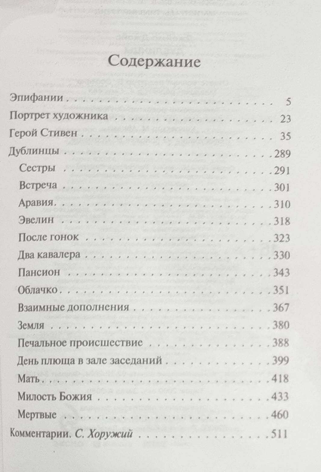 Эта книга — собрание художественной прозы Джеймса Джойса, написанной им прежде своего главного труда, романа «Улисс». Это цикл прозаических этюдов «Эпифании», роман «Портрет художника» и незаконченный опус «Герой Стивен».
