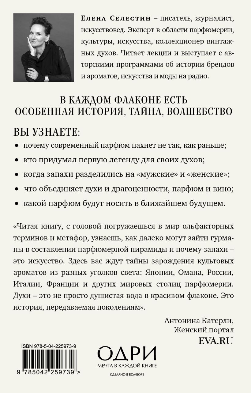 Это третья книга Елены Селестин, эксперта в области парфюмерии и искусства, автора бестселлера «Тот самый парфюм». Книга расскажет о разных гранях и смыслах парфюмерии, о волшебных историях и секретах, заключенных во флаконы. Увлекательная, написанная с вдохновением и легкостью — книга станет великолепным подарком для всех, кто любит духи и ценит красоту. Теперь в новом мини-формате, удобно брать с собой!