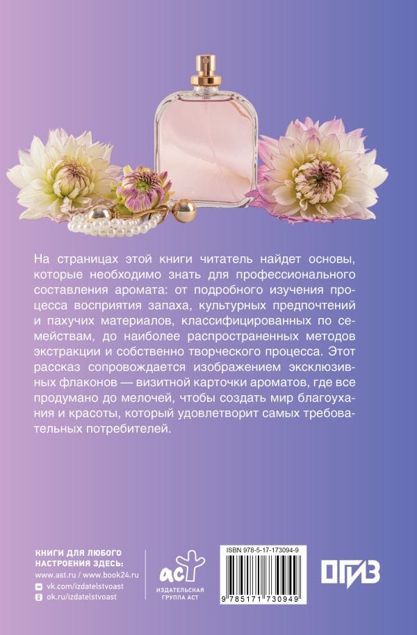 На страницах этой книги читатель найдет основы, которые необходимо знать для профессионального составления аромата: от подробного изучения процесса восприятия запаха, культурных предпочтений и пахучих материалов, классифицированных по семействам, до наиболее распространенных методов экстракции и собственно творческого процесса. Этот рассказ сопровождается изображением эксклюзивных флаконов — визитной карточки ароматов, где все продумано до мелочей, чтобы создать мир благоухания и красоты, который удовлетворит самых требовательных потребителей.
