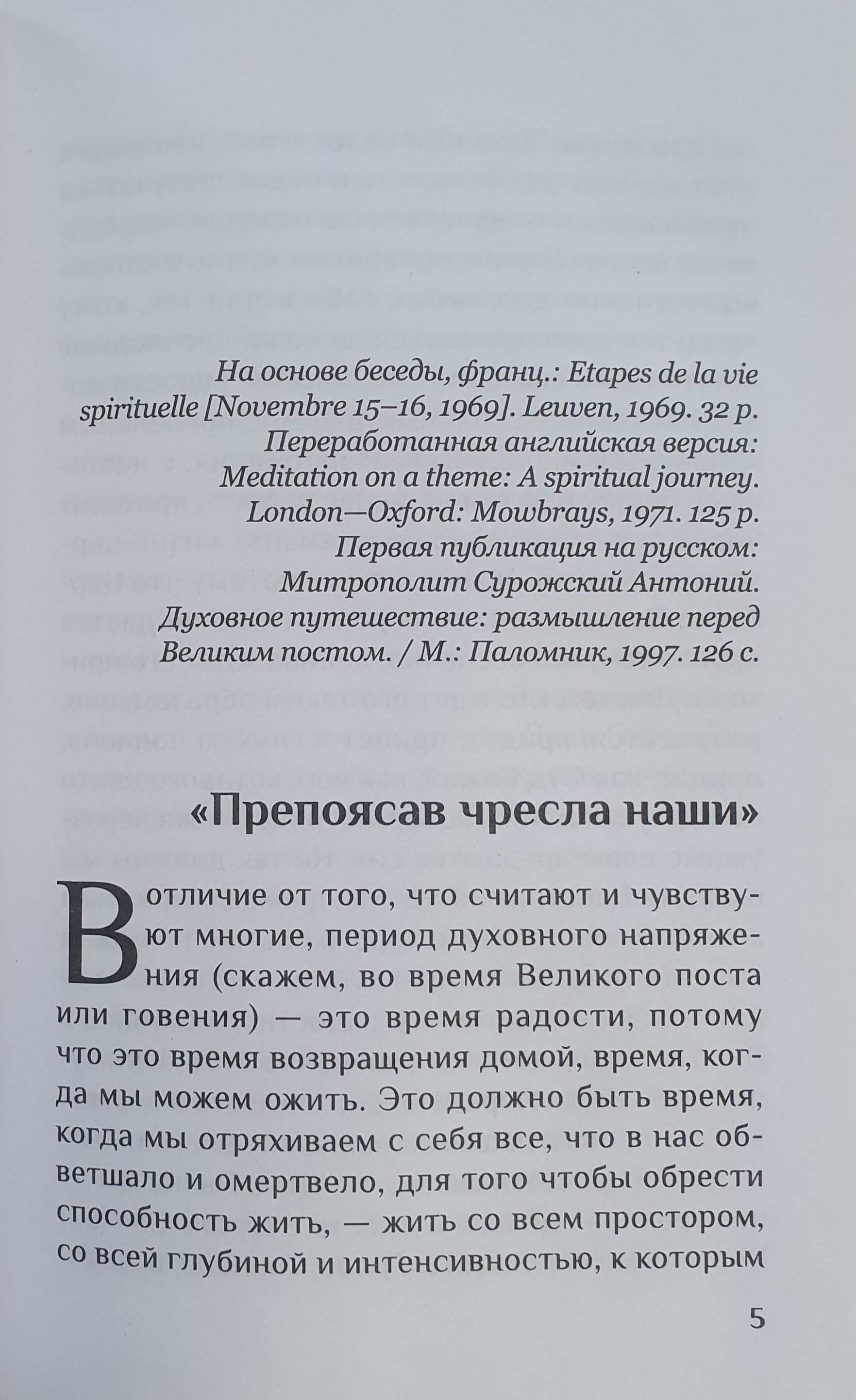 Великий пост, ежегодно, - самый серьезный, духовно насыщенный период в жизни христианина. В подготовке к нему митрополит Антоний предлагает вместе поразмышлять над содержанием евангельских сюжетов, посвествований и притч, которыми Церковь наставляет нас в особые предпостовые недели. Книга лмшена нарочитой назидательности и ясно передает внутреннее христианское самоощущение автора.